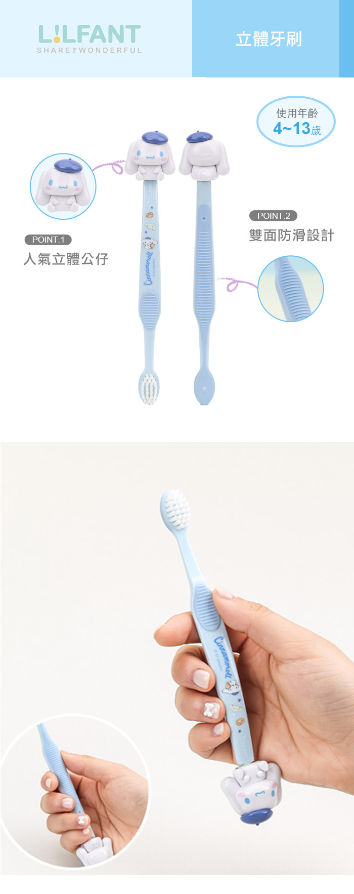 ◆適合兒童4-13歲使用的細軟刷毛