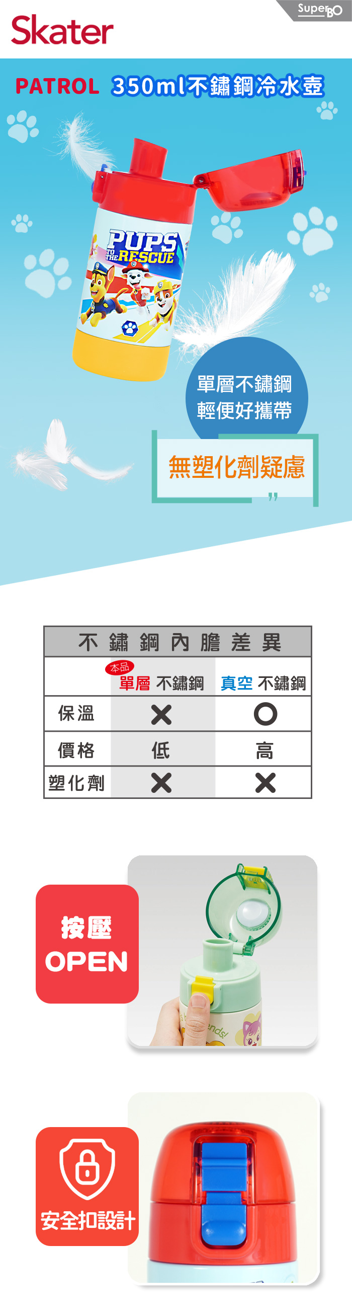 Skater 不鏽鋼直飲冷水壺350ml 汪汪隊立大功