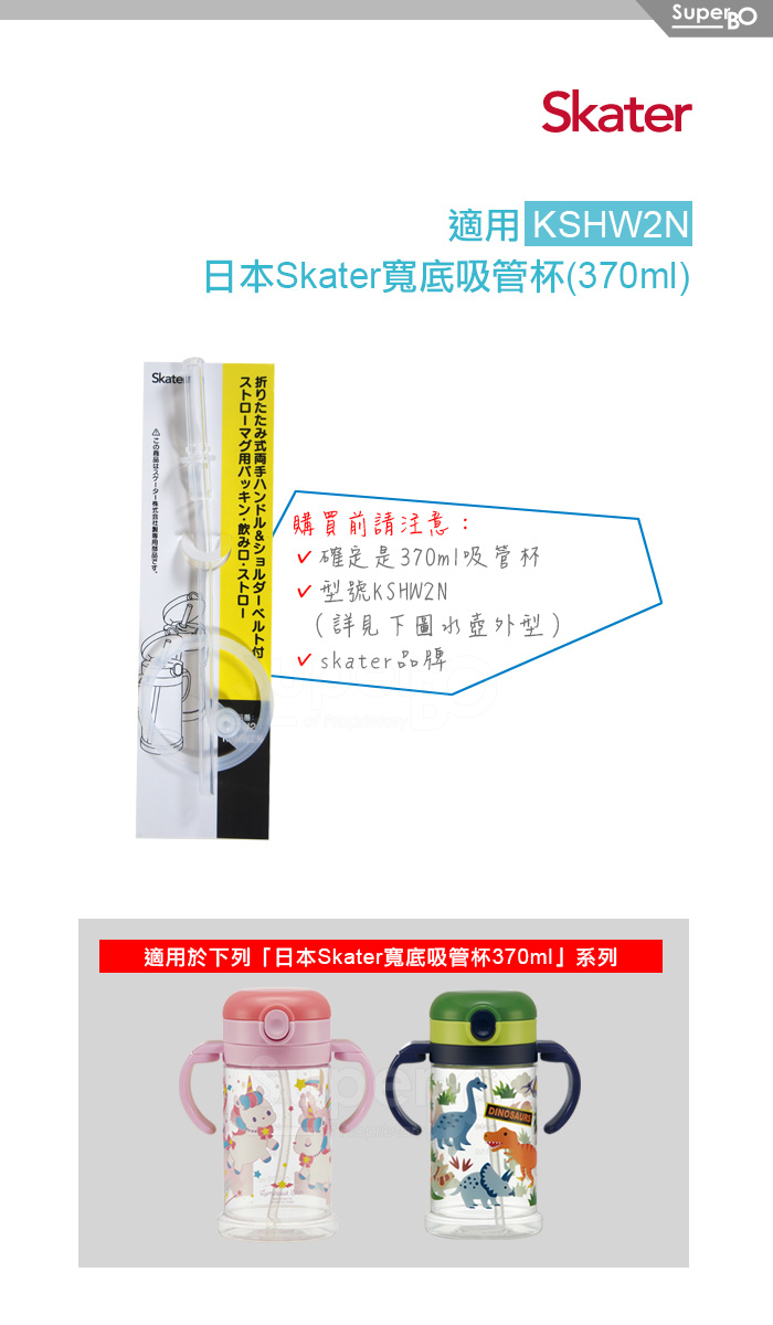 Skater 寬底吸管杯370ml 替換吸管組