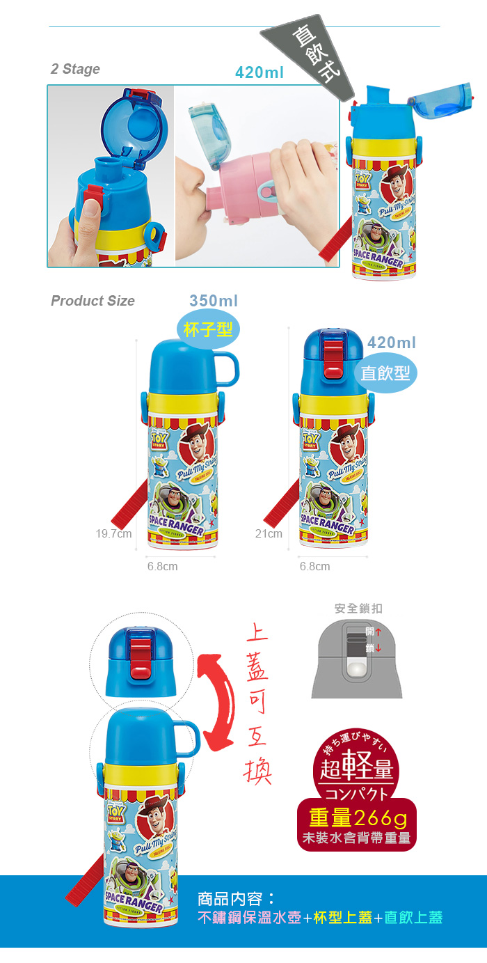 Skater 不鏽鋼保溫水壺(直飲420ml+杯蓋組) 玩具總動員