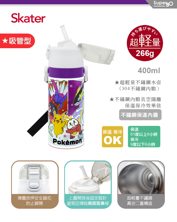 Skater 吸管不鏽鋼保溫水壺400ml Pokemon SV