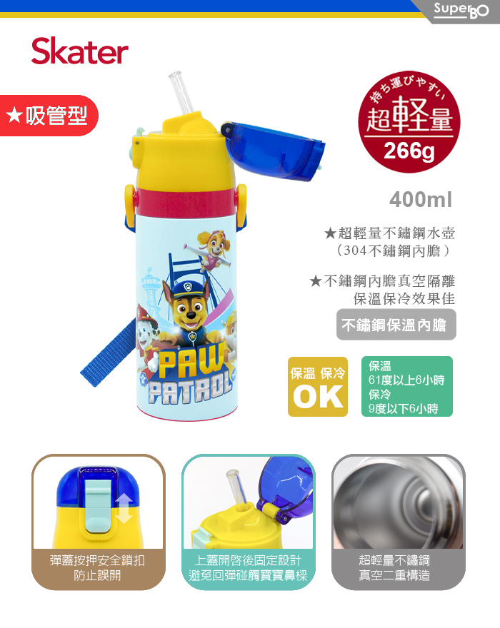 Skater 吸管不鏽鋼保溫水壺400ml 汪汪隊