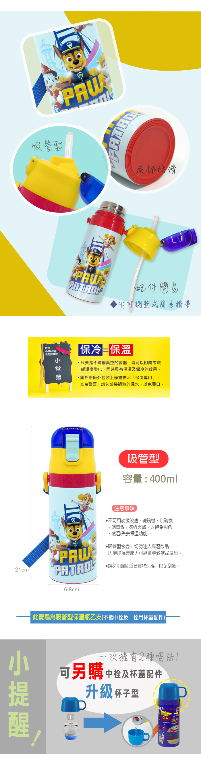 4.雙層真空不鏽鋼容器,皆具有保冷保溫功能,吸管型水壺,切勿注入高溫飲品,因環境溫差壓力可能會導致飲品溢出。