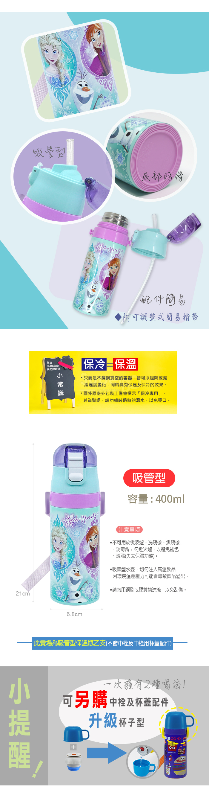 4.雙層真空不鏽鋼容器,皆具有保冷保溫功能,吸管型水壺,切勿注入高溫飲品,因環境溫差壓力可能會導致飲品溢出。