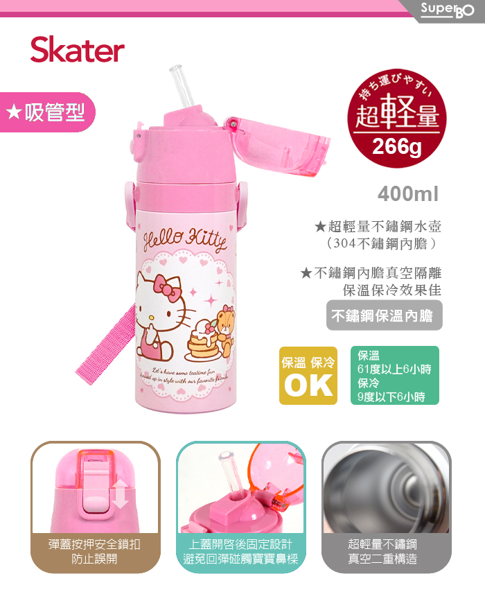 Skater 吸管不鏽鋼保溫水壺400ml Kitty