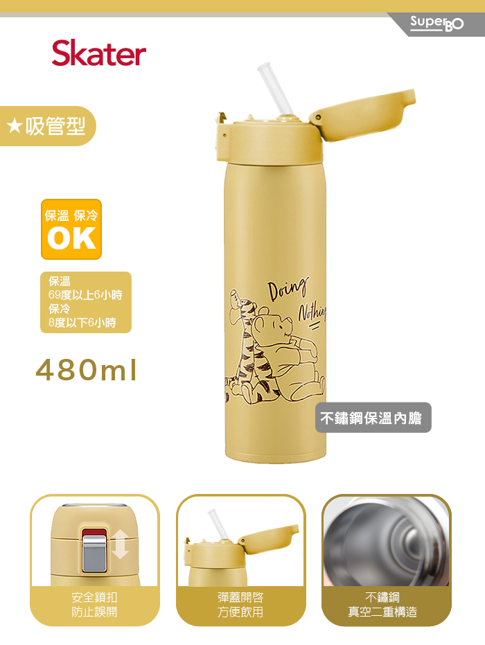Skater 不鏽鋼吸管保溫瓶480ml 維尼