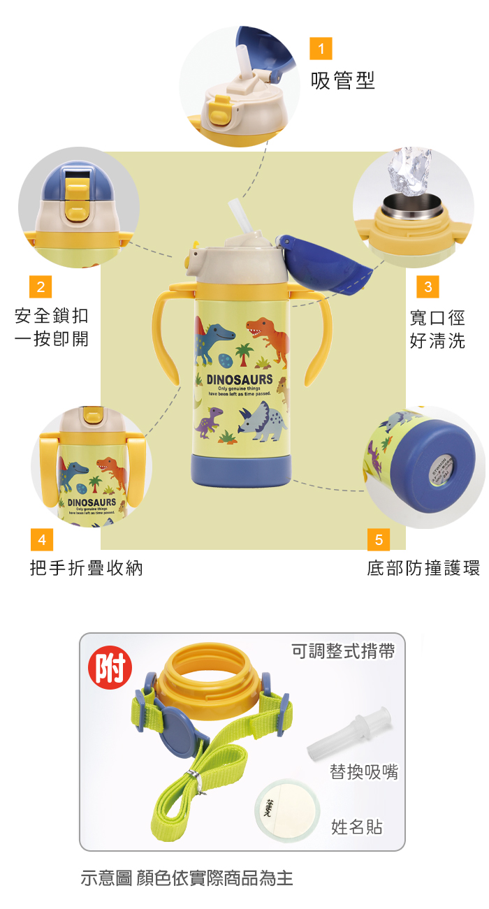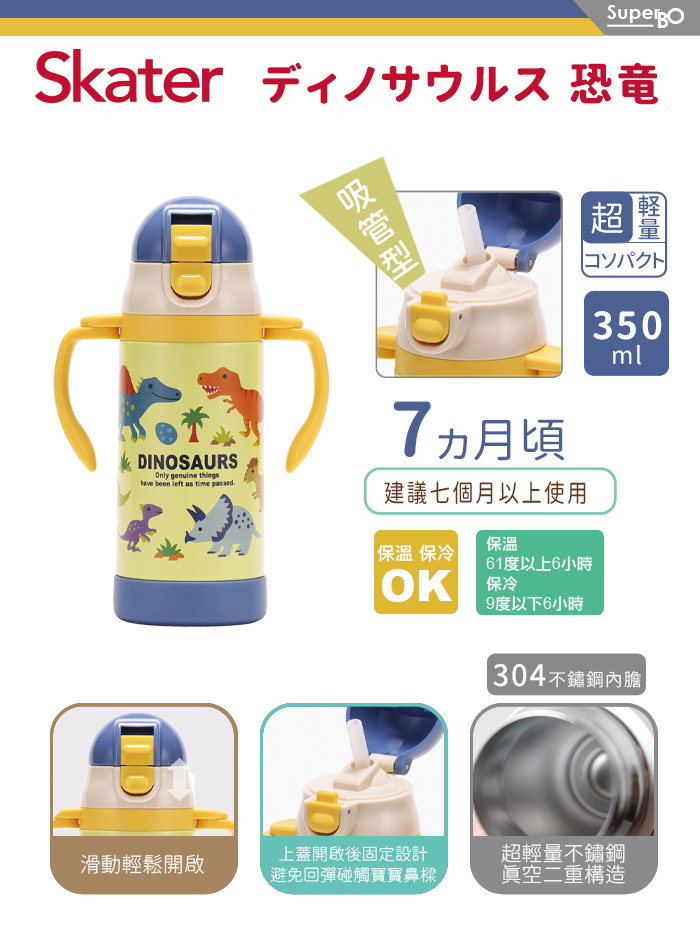 Skater 吸管型不鏽鋼兩用杯350ml 恐龍圖鑑