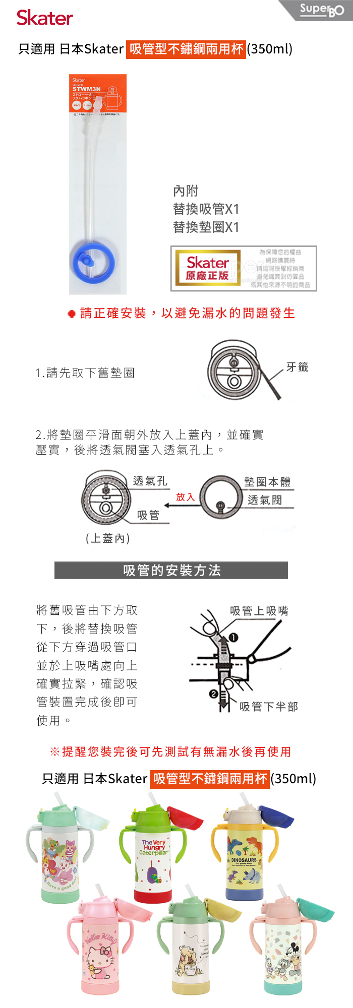 Skater 吸管型不鏽鋼兩用杯350ml 替換吸管組