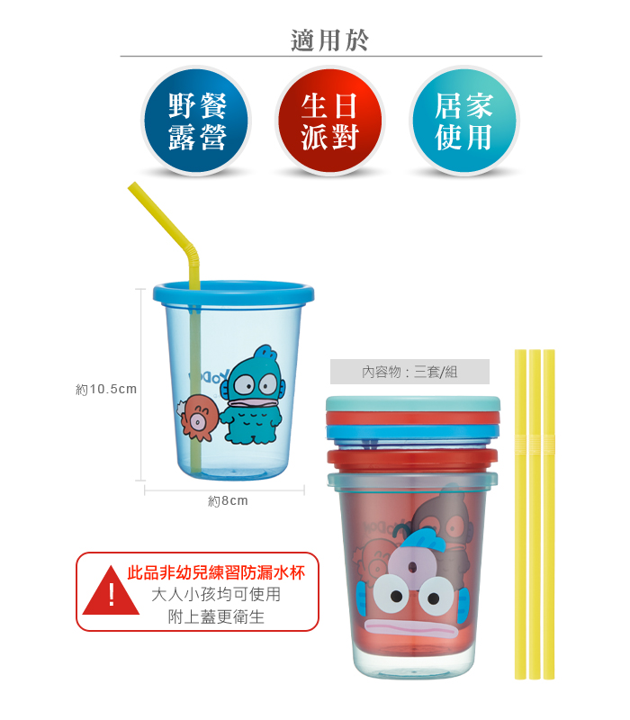 內容物:杯子(含蓋)*3、拋棄式吸管*3