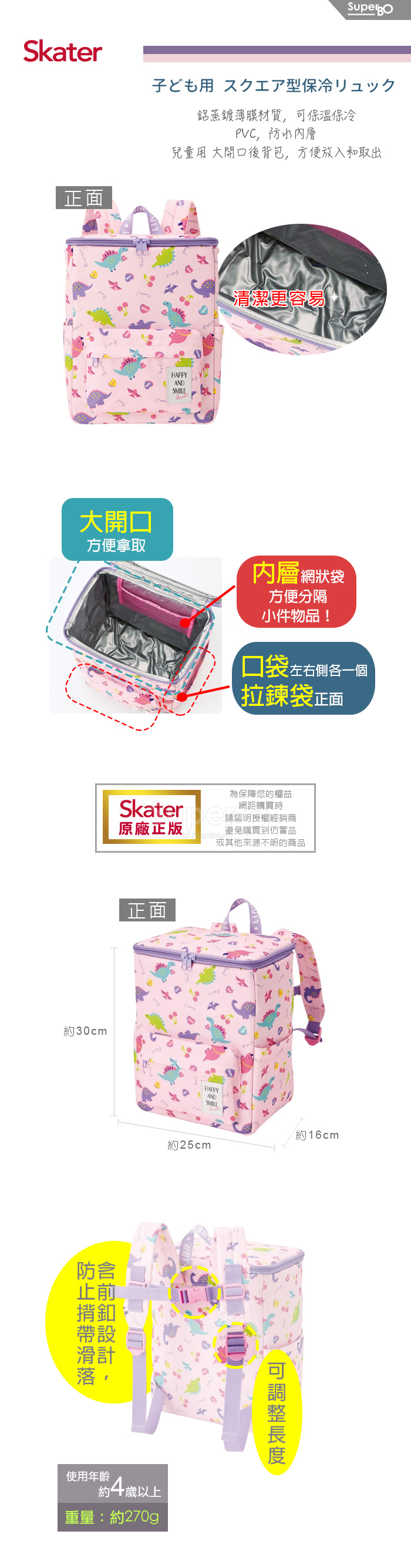 Skater 童用後背包(防水保溫內層) 粉粉龍