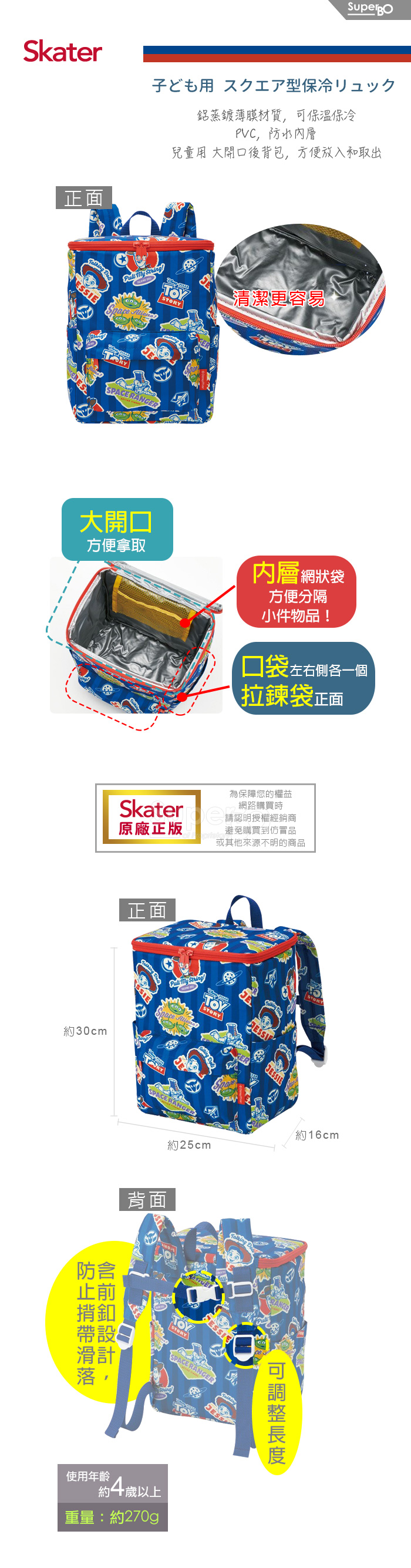Skater 童用後背包(防水保溫內層) 玩具總動員