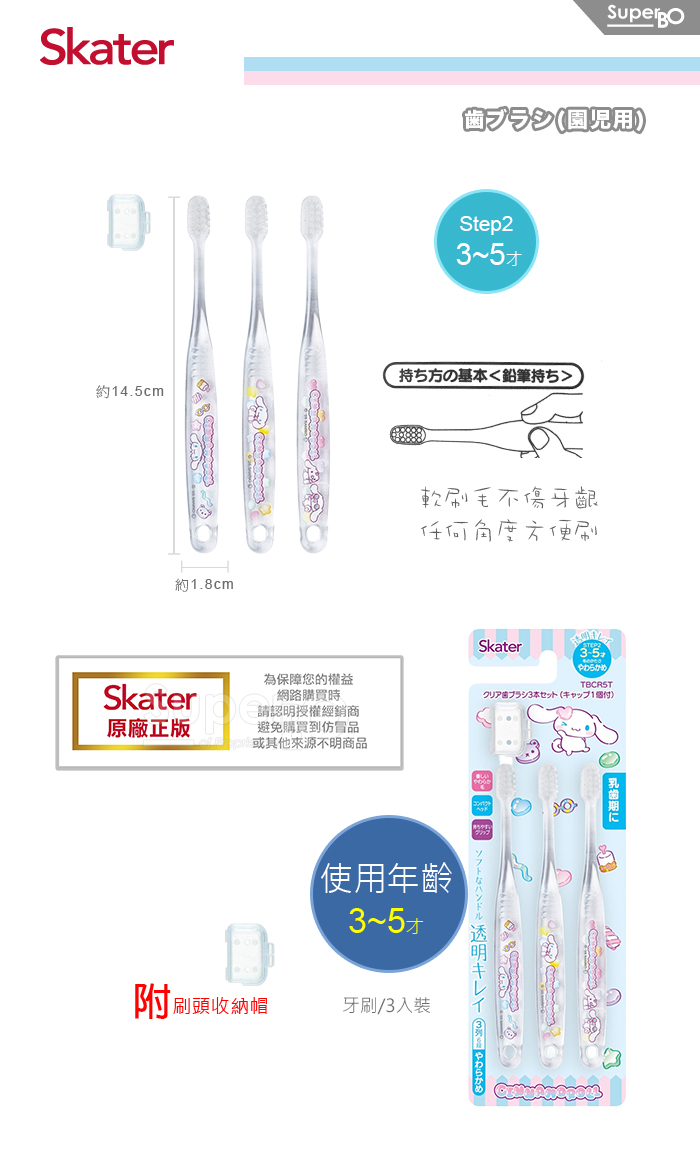 Skater 兒童牙刷(3-5歲)3入組 大耳狗