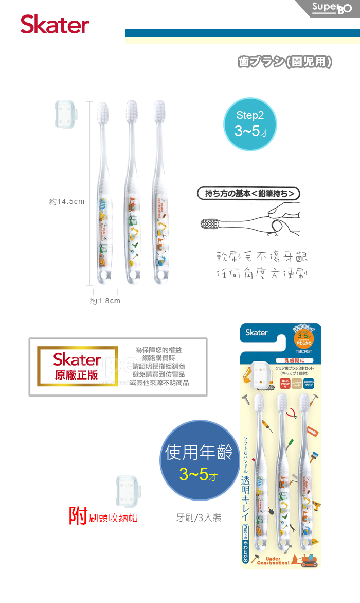 Skater 兒童牙刷(3-5歲)3入組 工程車