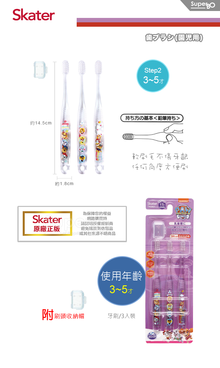 Skater 兒童牙刷(3-5歲)3入組 汪汪隊(紫)