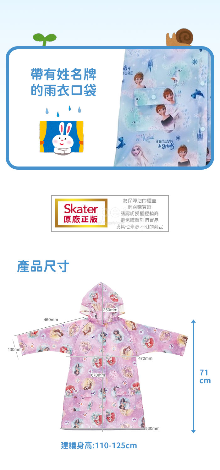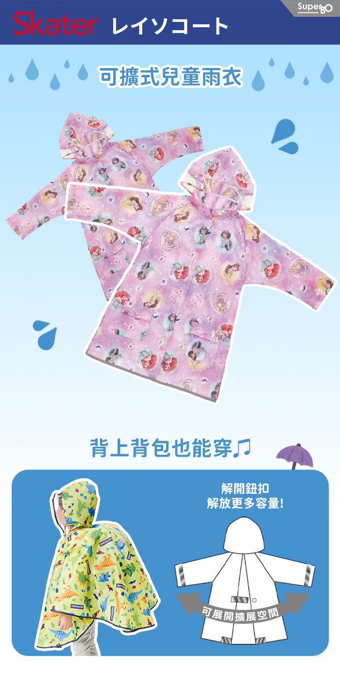 Skater 可擴式兒童雨衣 迪士尼公主