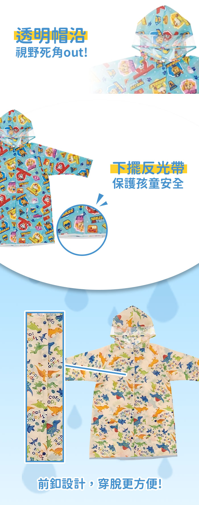 ◆下擺有反光帶,保護孩童行走安全。