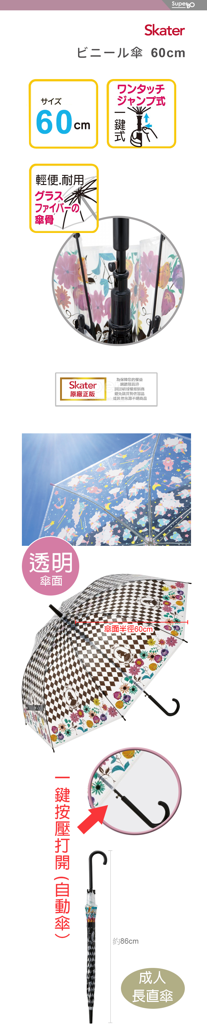 Skater 透明長直傘(60cm) 愛麗絲