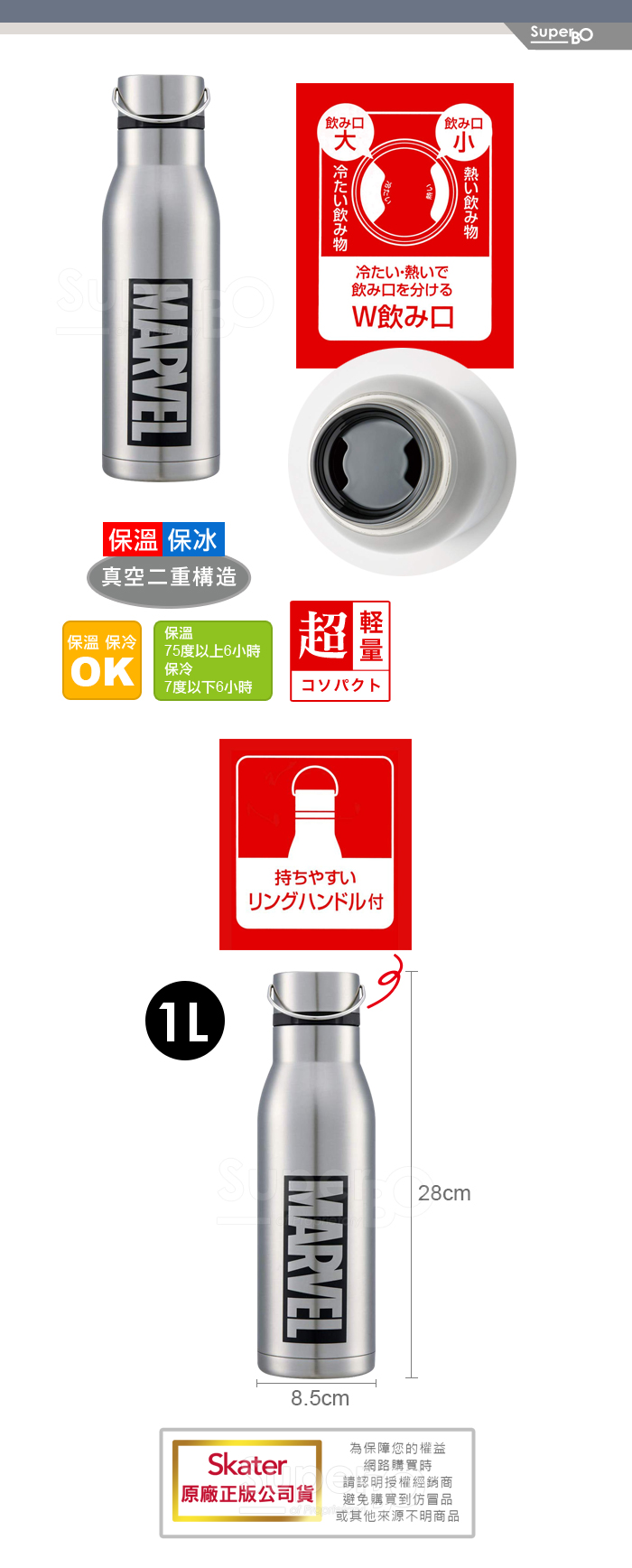 Skater 不鏽鋼雙層真空瓶1000ml 漫威