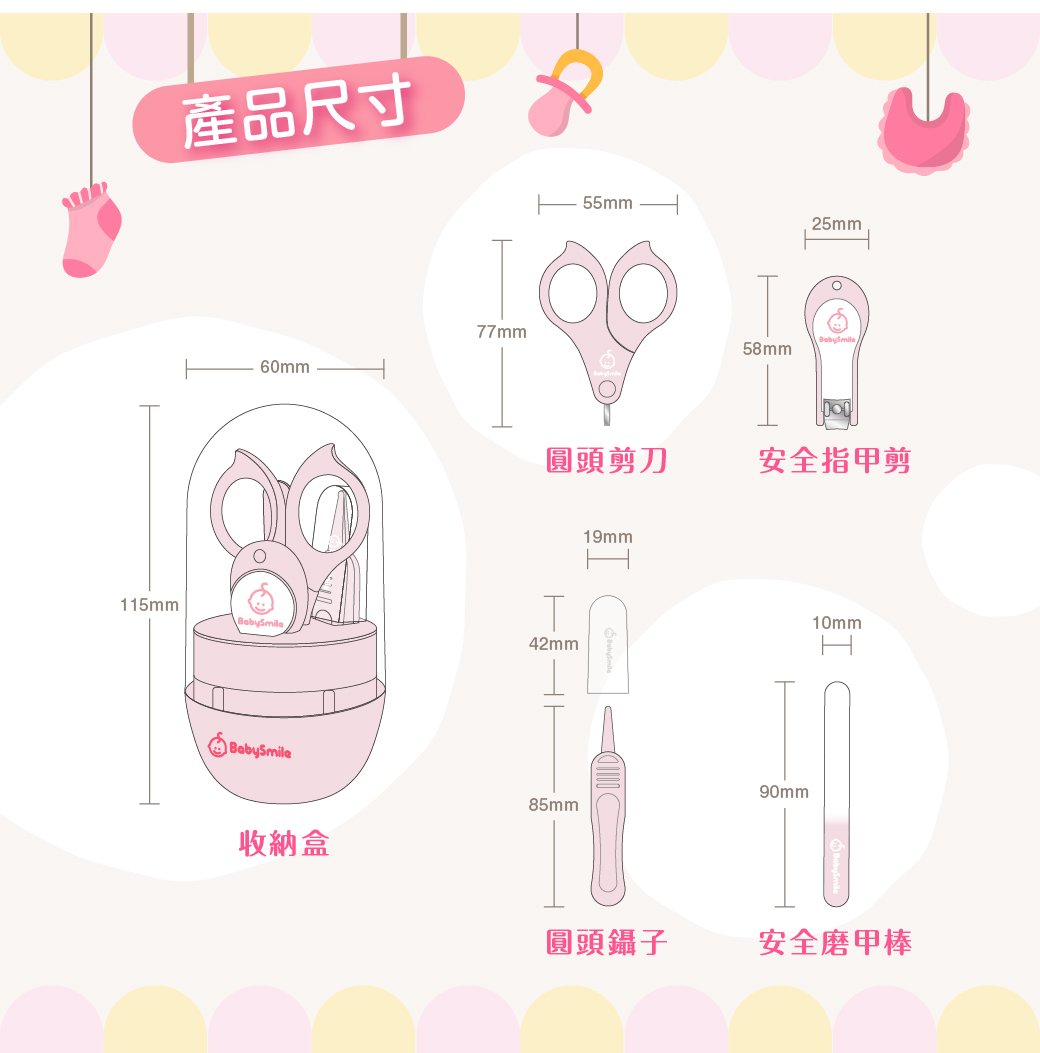圓頭剪刀、安全指甲剪、安全磨甲棒、圓頭鑷子