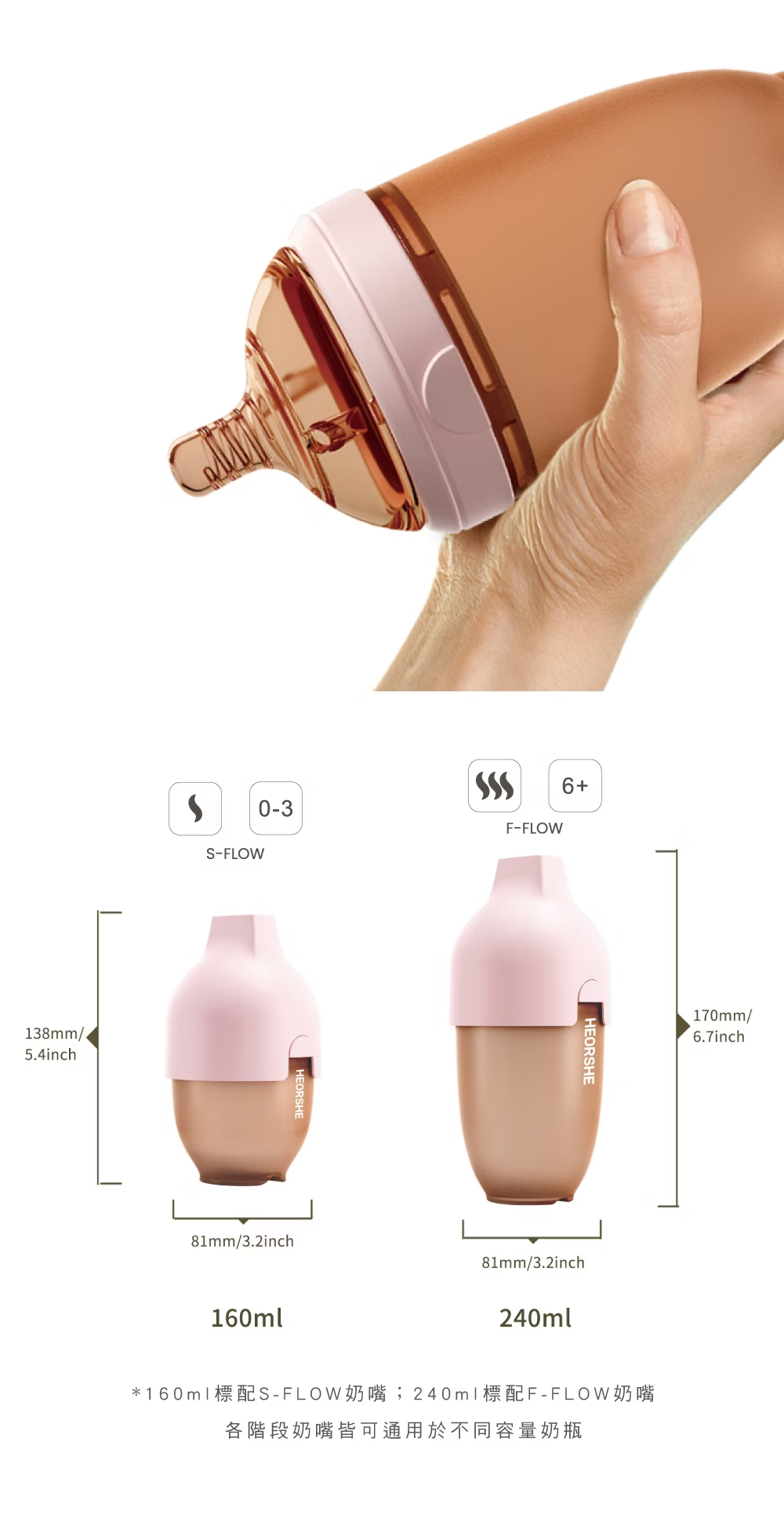 奶      嘴:搭配 F-FLOW 高流速奶嘴
