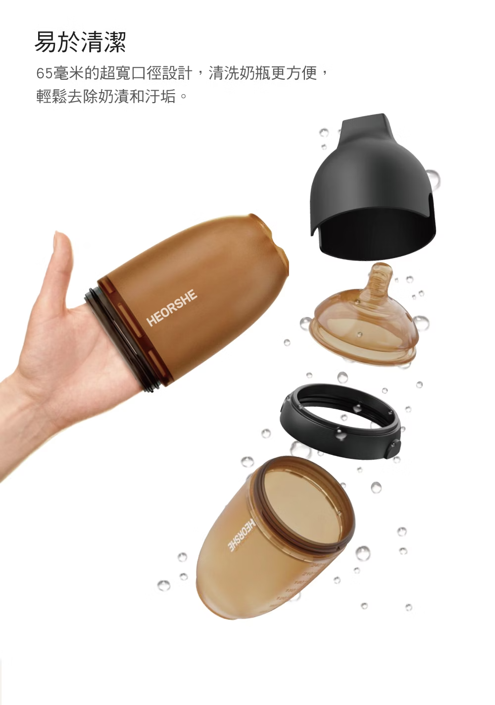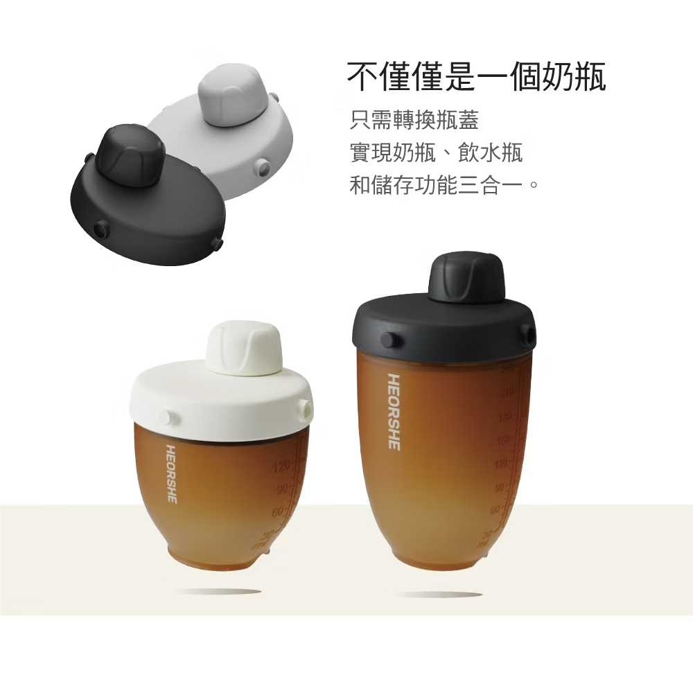 耐熱溫度: 瓶身、奶嘴、瓶頸(-20°C~180°C) / 瓶蓋(-20°C~100°C)
