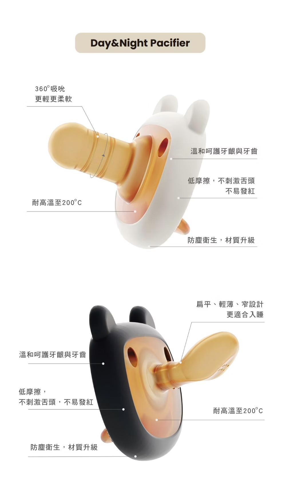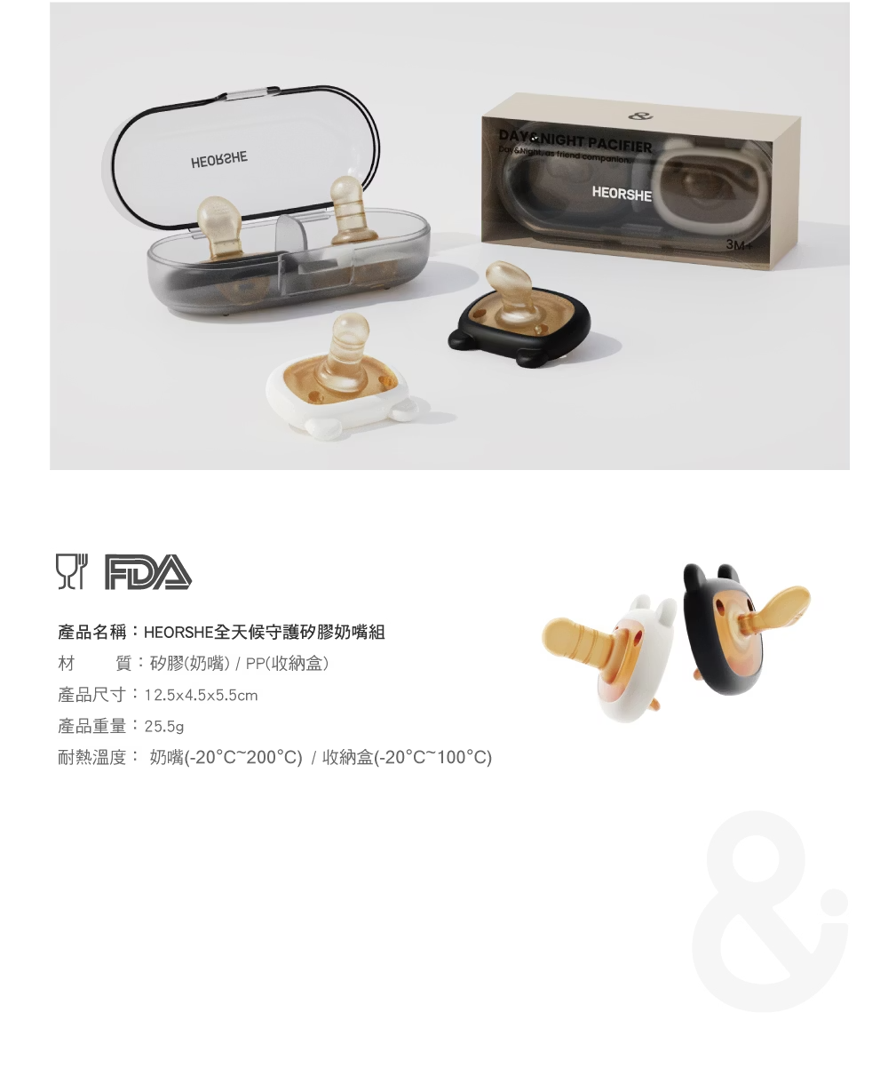 商品名稱:全天候守護矽膠奶嘴組商品尺寸:12.5x4.5x5.5 cm商品材質:矽膠(奶嘴) / PP(收納盒)產品重量:25.5g耐熱溫度: 奶嘴(-20°C~200°C) / 收納盒(-20°C~100°C)商品產地:中國