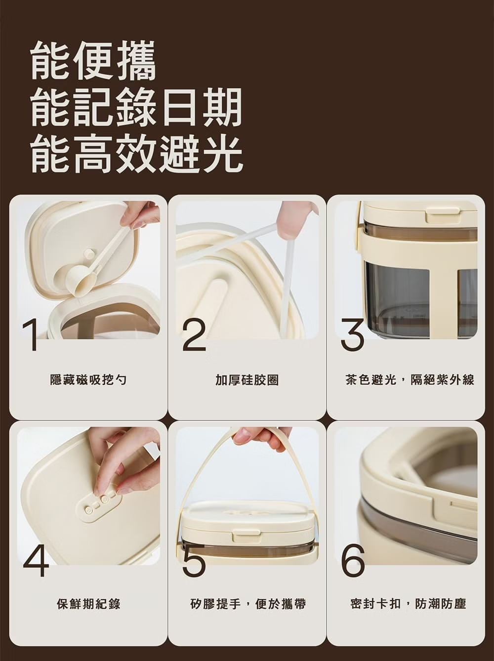 商品材質:盒體-AS / 盒蓋-ABS / 勺子-PP / 蓋子內結構件-POM / 密封圈-矽膠