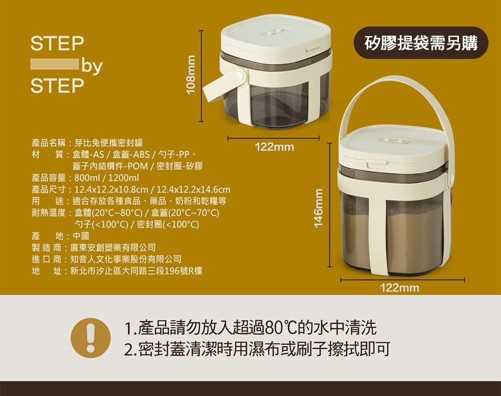 芽比兔 便攜儲存密封罐 含矽膠提帶 1200ml