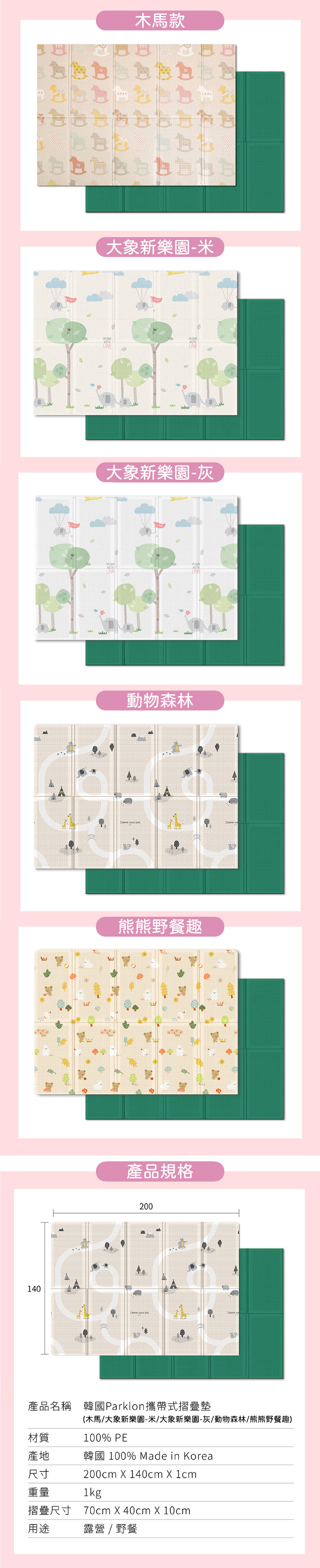 韓國PARKLON 攜帶式摺疊地墊系列