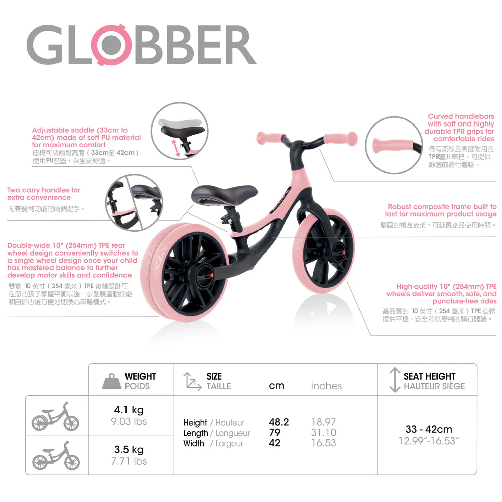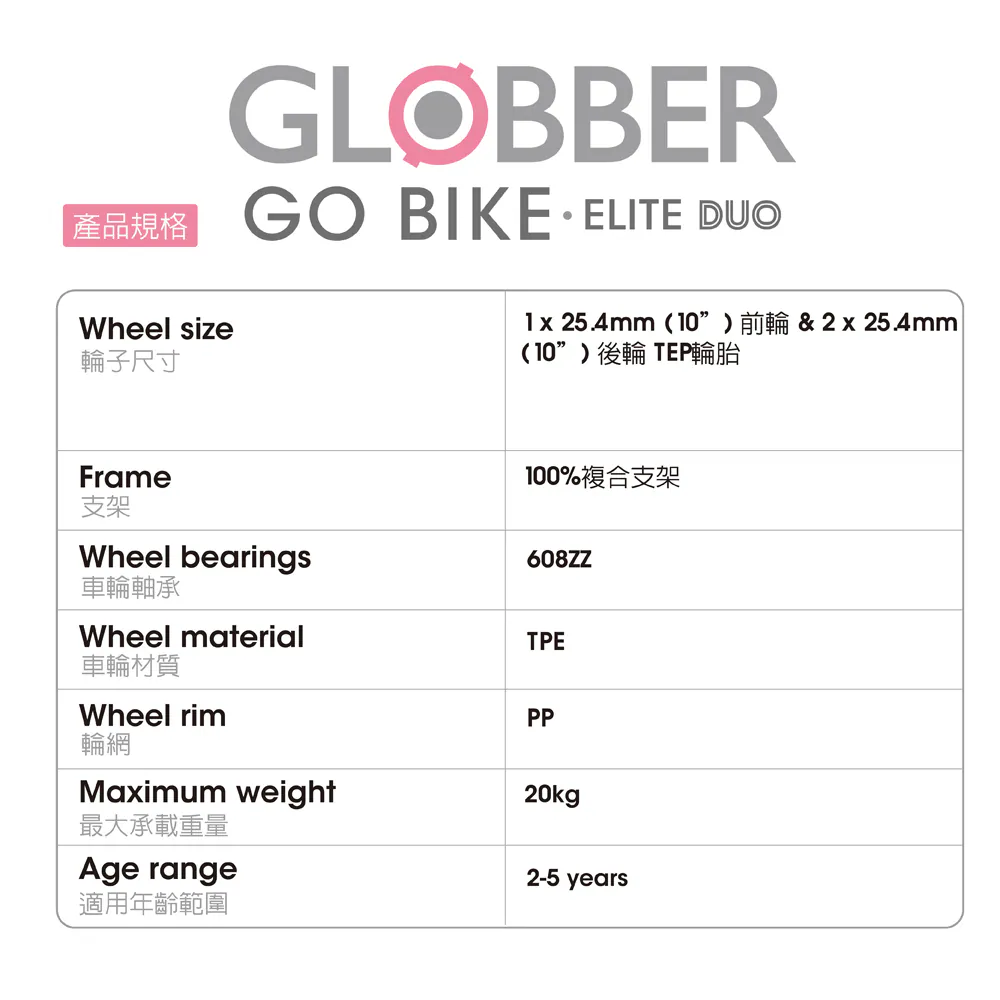 ※規格及重量以實車為準,GLOBBER原廠保留規格變動權利。