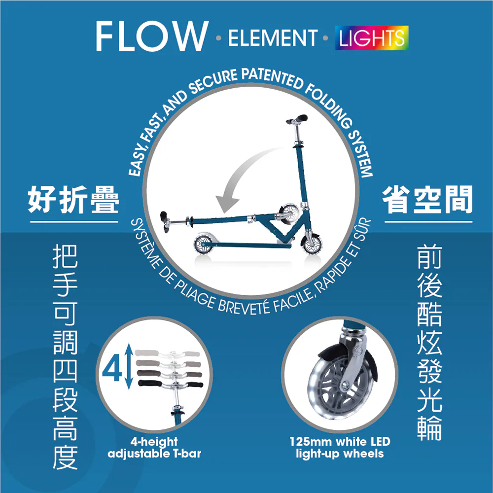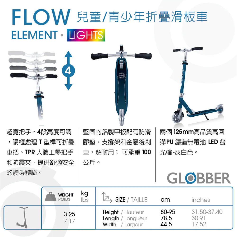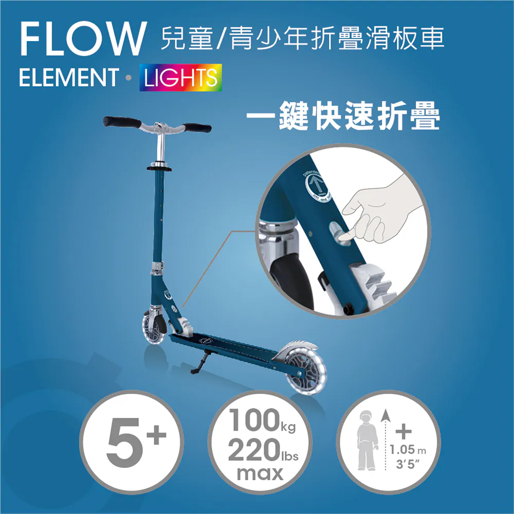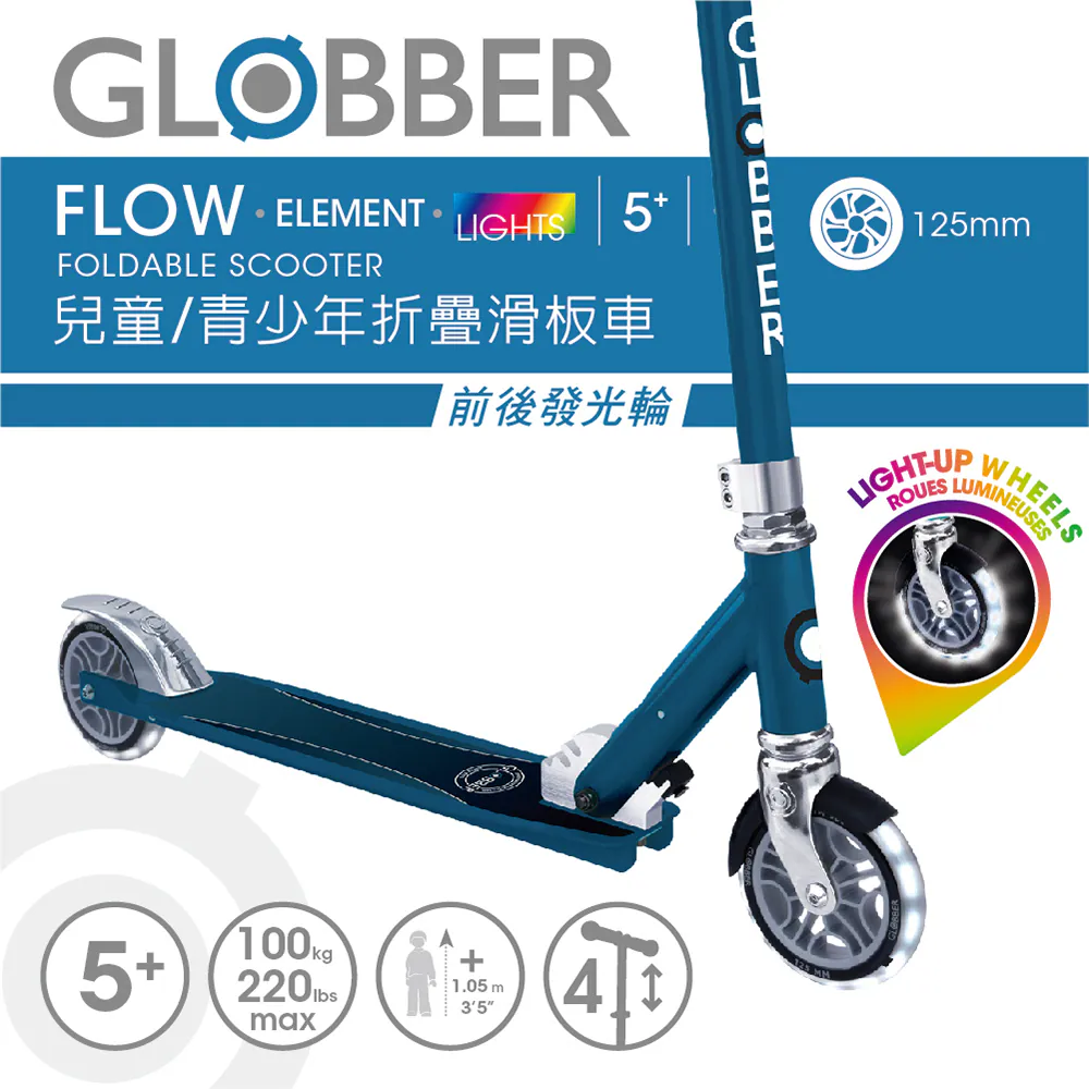 法國GLOBBER FLOW ELEMENT LIGHTS 兒童/青少年折疊滑板車