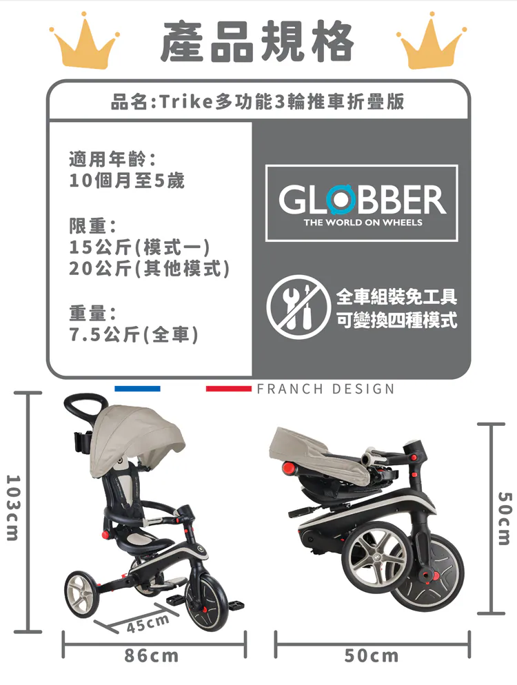 商品名稱:法國 GLOBBER 4合1 Trike多功能3輪推車折疊版