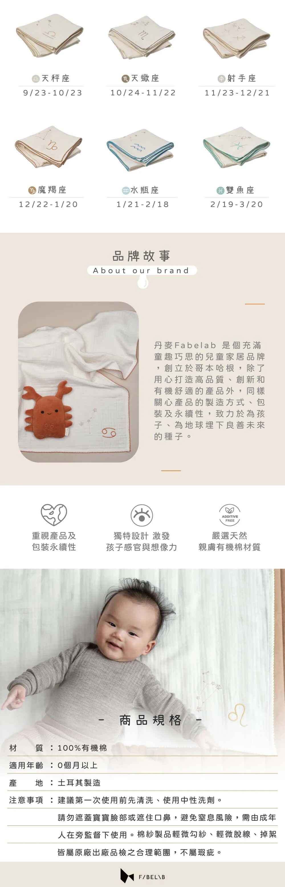 Fabelab 有機棉星座毯 (多款可選)