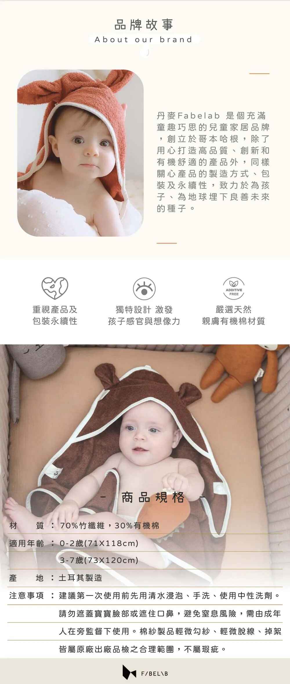 Fabelab 竹纖維連帽浴巾0-2y (多款可選)