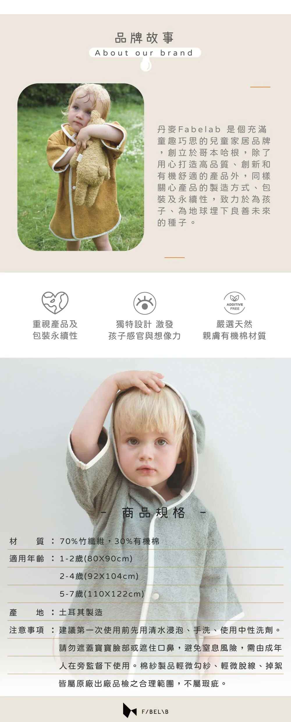 Fabelab 竹纖維浴袍1-2y (多款可選)