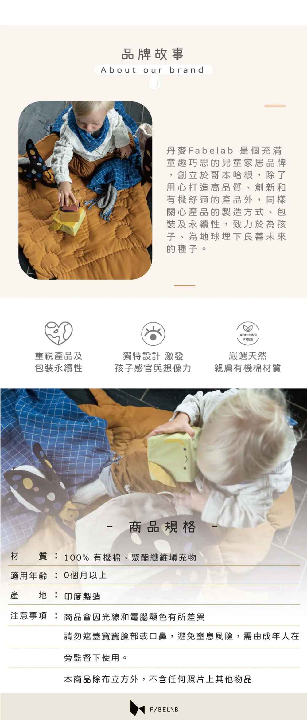 材質:表層/ 100%有機棉 ; 填充物/ 100%聚氨酯發泡材