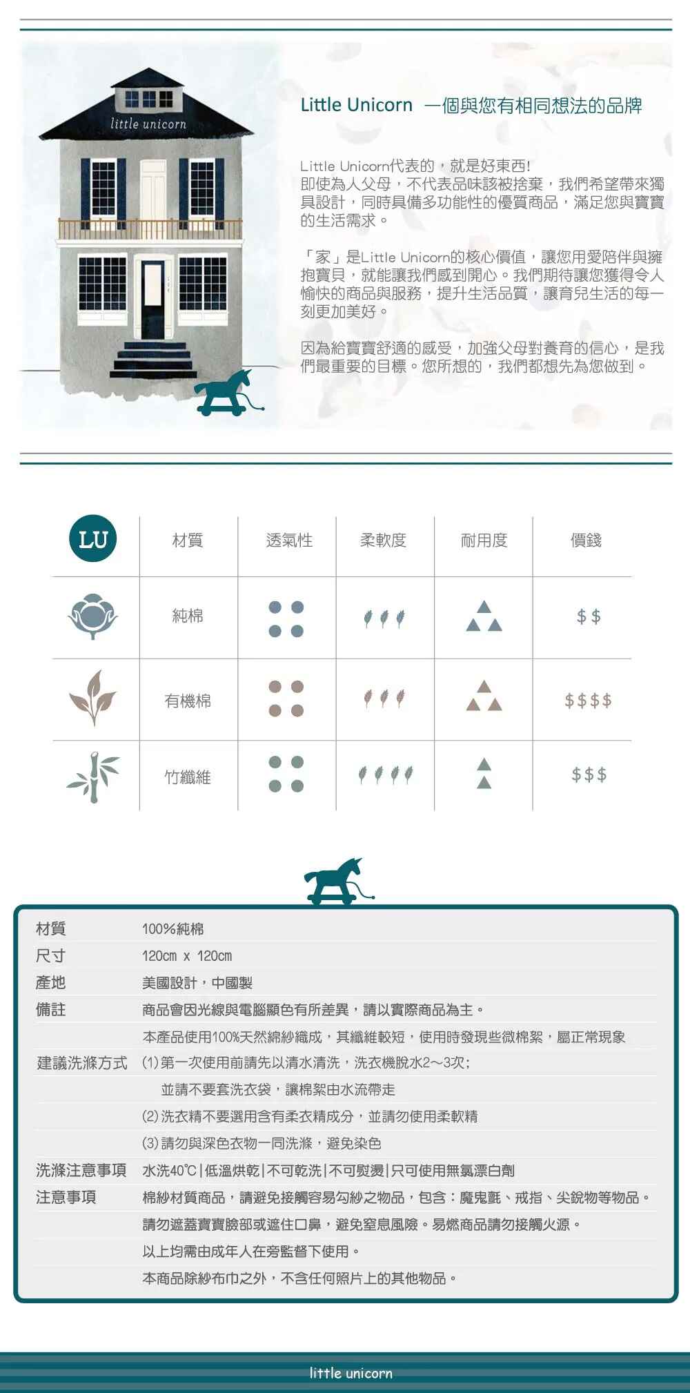 Little Unicorn 純棉紗布巾三入組 (多色選擇)