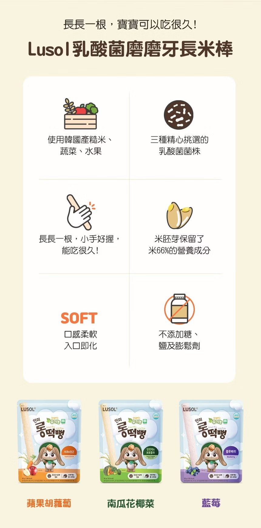 韓國LUSOL 乳酸菌磨磨牙長米棒