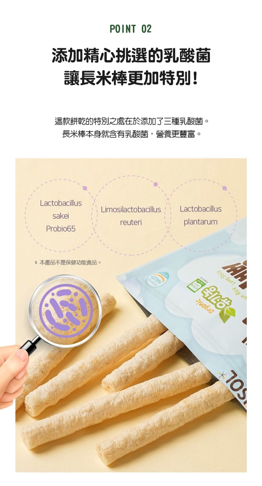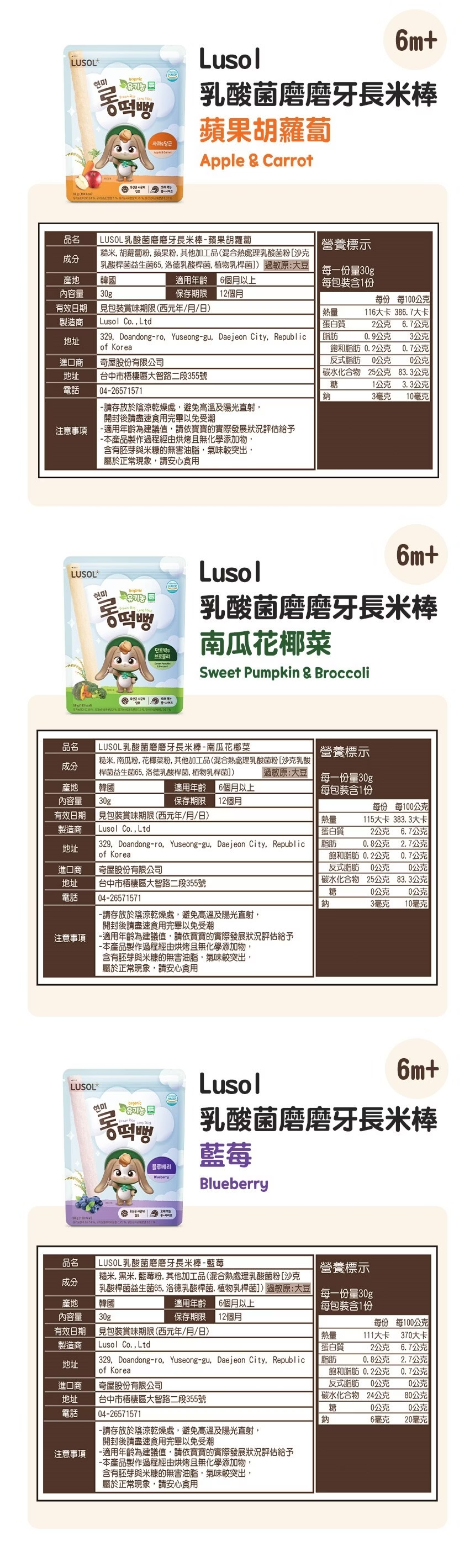 成份:糙米,胡蘿蔔粉,蘋果粉,其他加工品(混合熱處理乳酸菌粉[沙克乳酸桿菌益生菌65,洛德乳酸桿菌,植物乳桿菌])