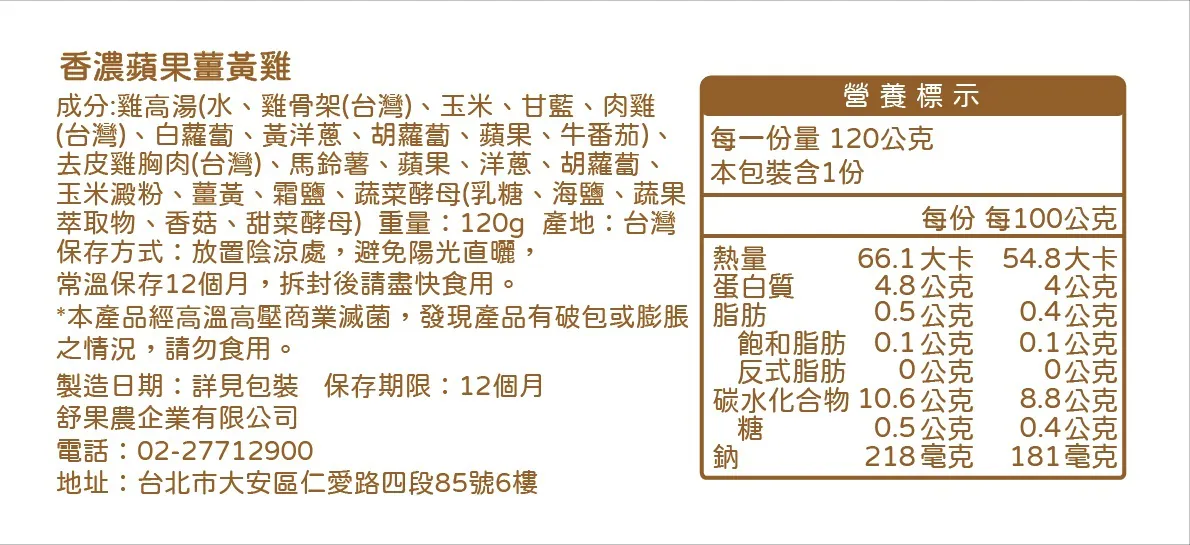 ※馬鈴薯為人工截切因此有大小塊差異,並且經高溫高壓商業滅菌與復熱後馬鈴薯可能較為細碎。