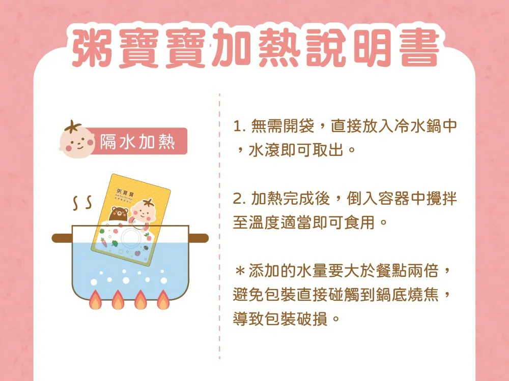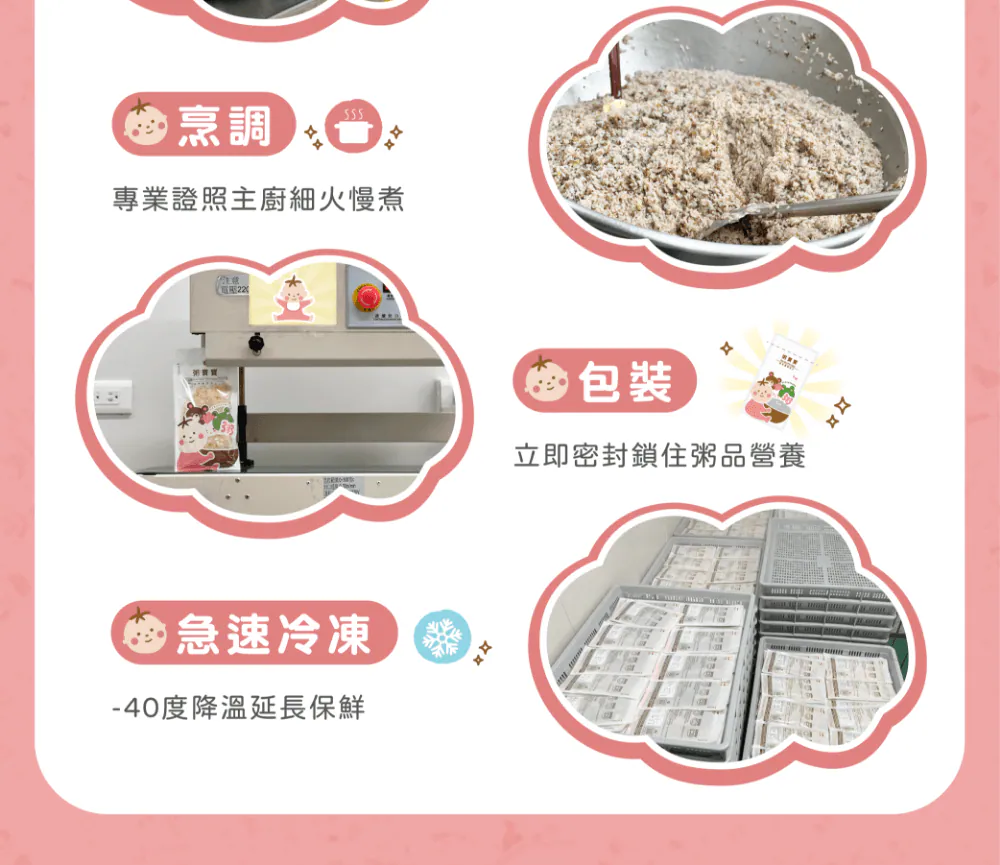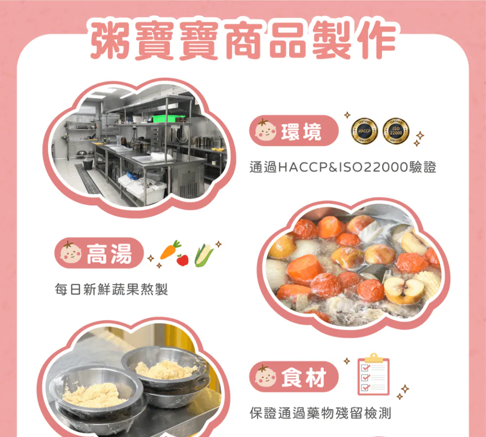 2.粥寶寶蔬菜來源皆來自友善種植(有機、無毒)之農友,部分蔬菜成分會因為季節有所調整,實際蔬菜成分請以寶寶粥商品的標籤貼紙為主,若有任何問題歡迎與客服人員聯繫為您處理。