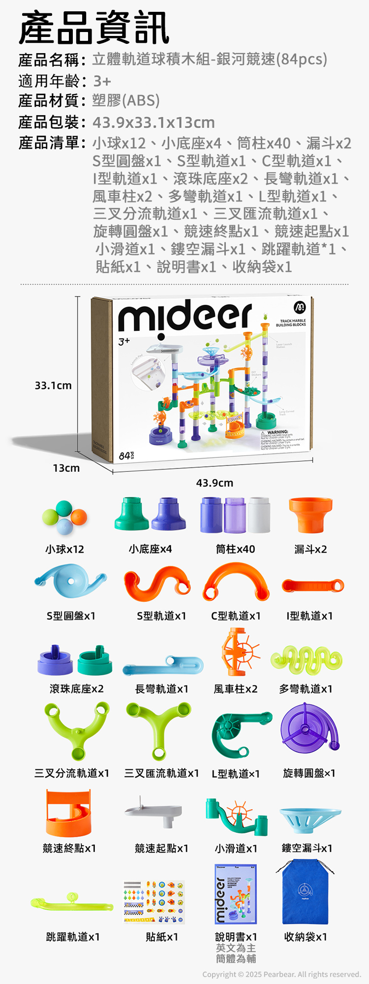 mideer 立體軌道球積木組-銀河競速(84pcs)