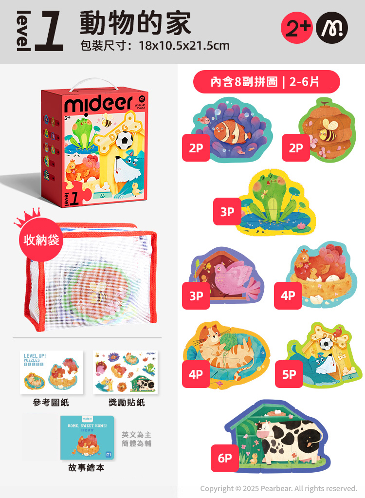 mideer 進階式拼圖-動物的家(LEVEL1)