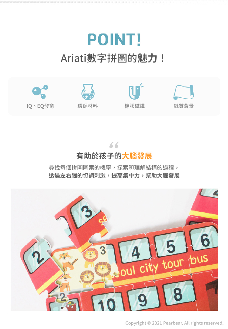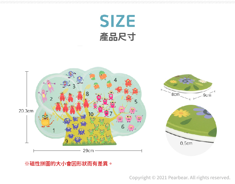 ‧內容物:磁性底板1個、數字磁貼拼圖10個