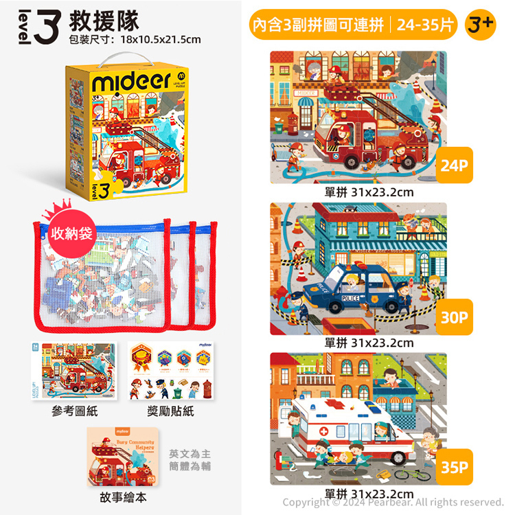 mideer 進階式拼圖-救援隊(LEVEL3)