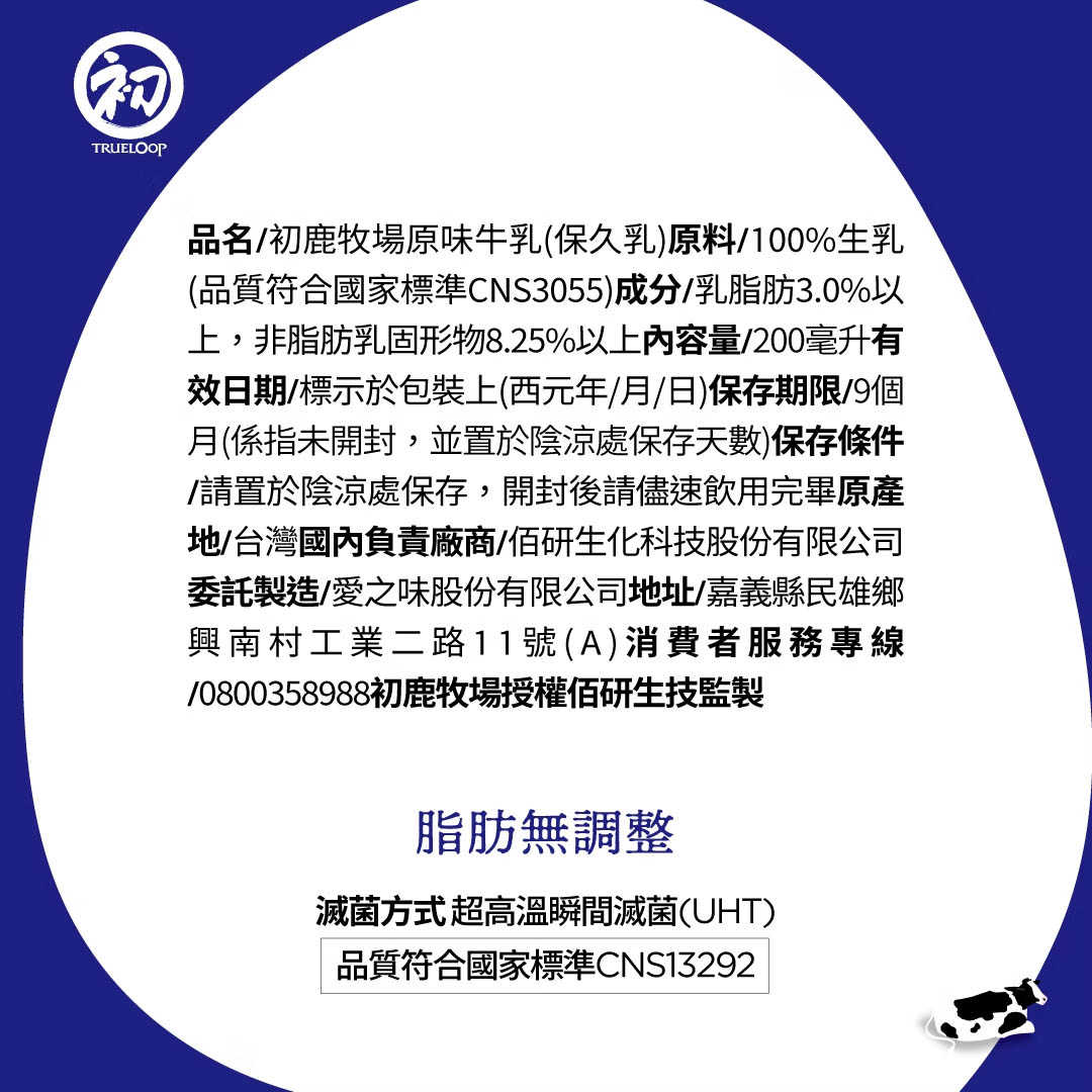 初鹿牧場 原味保久乳200ml(24入/箱)