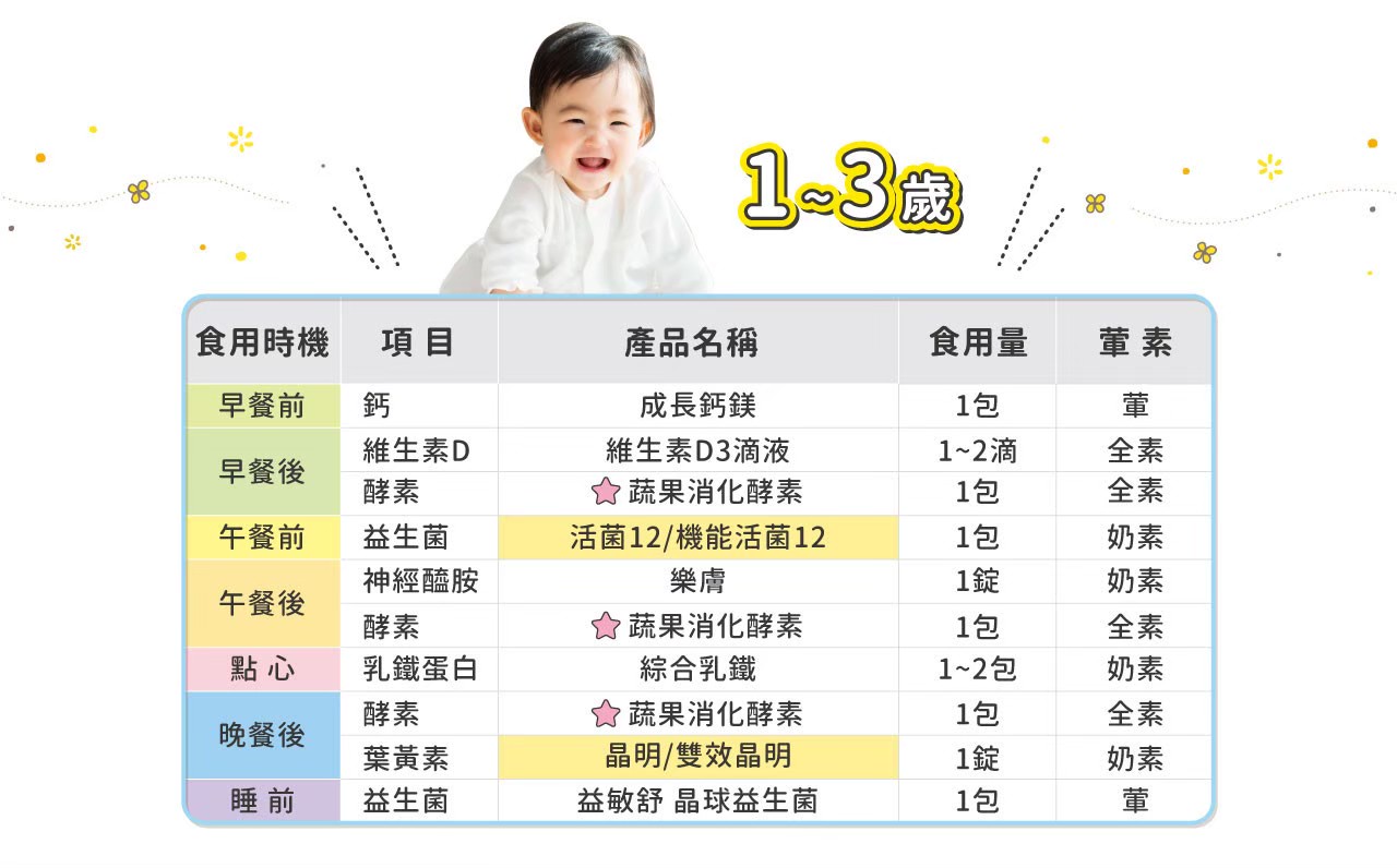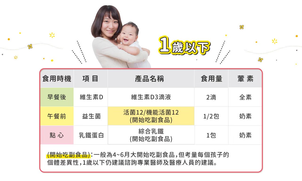 商品特色12種專利益菌配方,多元完整的益生菌,改變消化道菌叢,幫助排便順暢。以益生元為基底的無砂糖配方,提升消化道機能,降低甜度、減少負擔。選用專利包埋技術菌種配方(專利號:M603759),通過胃酸膽鹽試驗,幫助益菌安全抵達消化道,維持消化道健康。使用獨特乳酸菌共生發酵技術,保留豐富的發酵微量產物,補充微量營養素。本品出廠通過第三方檢驗活菌之菌數證明,每包出廠菌數至少150億,足量才有感。無添加色素、無添加防腐劑。銷售重點1歲以下可補充的寶寶益生菌,12種多元乳酸菌互利共生,搭配益生元共同營造最適合益菌生長的環境。活力海藻糖取代砂糖、膳食纖維讓消化道好咕嚕,家中寶寶、幼兒、兒童排便順暢好健康..