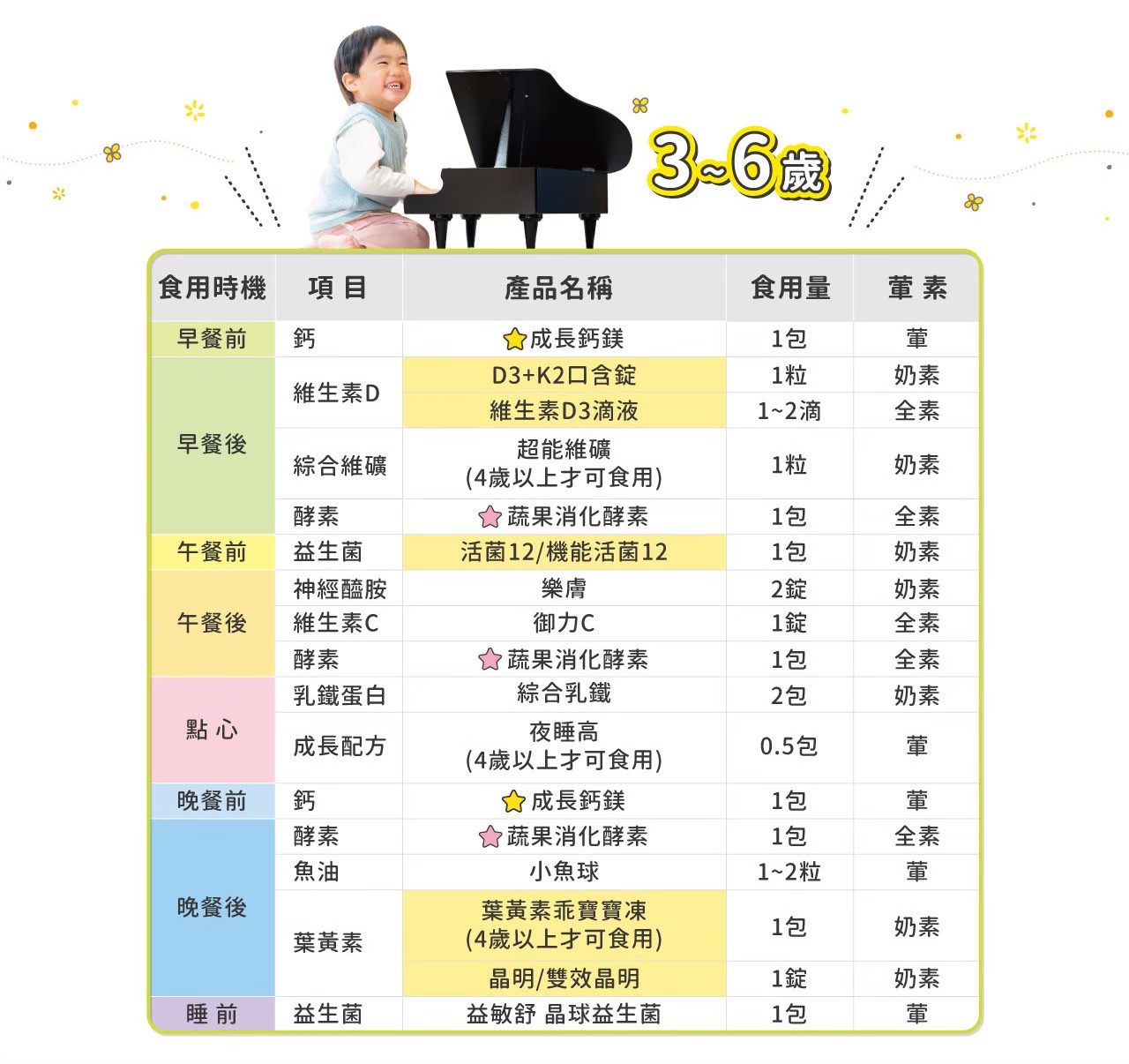 商品特色16種維生素礦物質4~12歲營養補充國際高品質認證來源接骨木莓添加,保護力+銷售重點˙完整配方 健康成長サポート 16種綜合營養素˙完整16種營養力-補充兒童易忽略的綜合維生素礦物質攝取,滿足成長需求。˙強化體質機能力-添加接骨木莓萃取,調整體質強化機能。˙儲蓄健康支持力-選用國際大廠高純度維生素,為健康扎實築底。˙全方位保護圈-每天1~2顆即可滿足一日所需,打造超能保護圈。商品規格規格說明罐裝商品容量90錠/罐主成分蔗糖、牛奶鈣、維生素C、百香果香料、檸檬酸、維生素E50%、硬脂酸鎂、菸鹼醯胺、硫酸鋅、檸檬酸鐵、維生素A棕櫚酸酯粉、二氧化矽、本多酸鈣、維生素D3、維生素B12、接骨木..