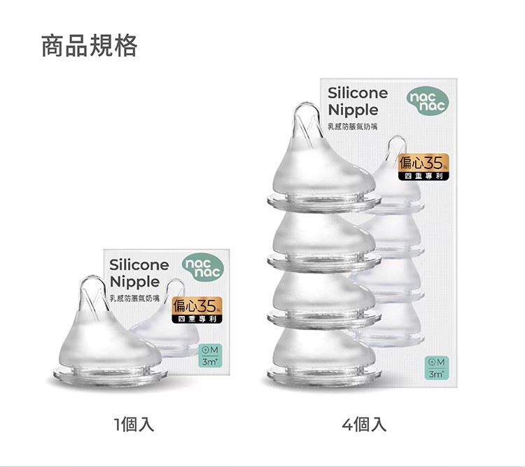 nac nac 妍心35%乳感防脹氣寬口奶嘴 4入組
