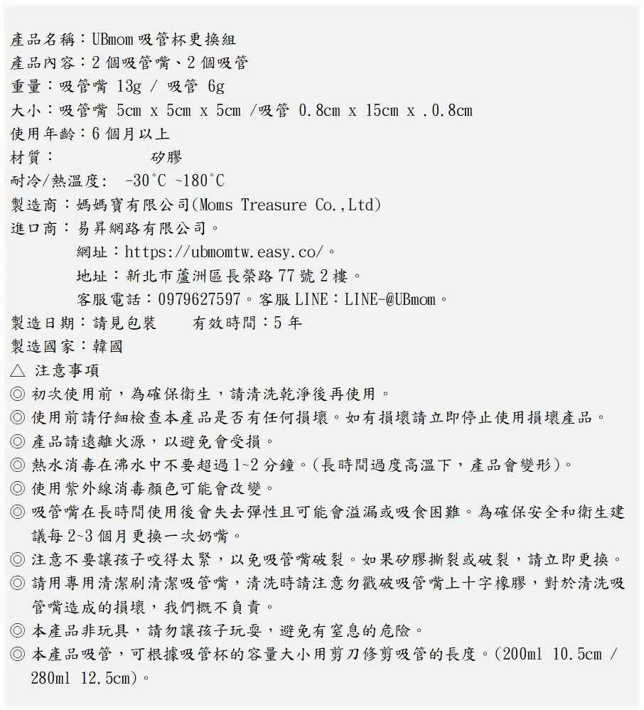 UBMOM 吸管杯配件-吸管嘴+吸管 兩入一組